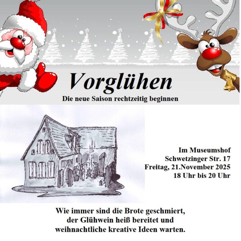 Am Freitag, den 21. November, wird im Heimatmuseum vorgeglüht. Von 18:00 bis 20:00 Uhr gibt es Glühwein, Snacks und jede Menge vorweihnachtliche Stimmung.
