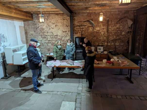 Ein besonderes Highlight bot am Samstag das Weihnachtsbasteln für Kinder. Zwischen 14 und 16 Uhr konnten die kleinen Besucherinnen und Besucher mit viel Freude die vorgefertigten Salzteigfiguren bemalen. Die Figuren, zum Teil liebevoll mit historischen Holzmodeln geformt, kamen hervorragend an und sorgten für viele strahlende Gesichter. Das Bastelangebot war nicht nur kreativ, sondern stellte auch eine schöne Verbindung zwischen Tradition und kindlicher Fantasie her.